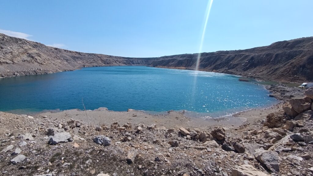 В прошлом году мы впервые съездили и нырнули в карьеры в городке Жанатас. Это фосфатные карьеры — всего их здесь пять. Когда-то здесь велась добыча, после чего карьеры заполнились водой и превратились в глубокие озёра с интересным рельефом.