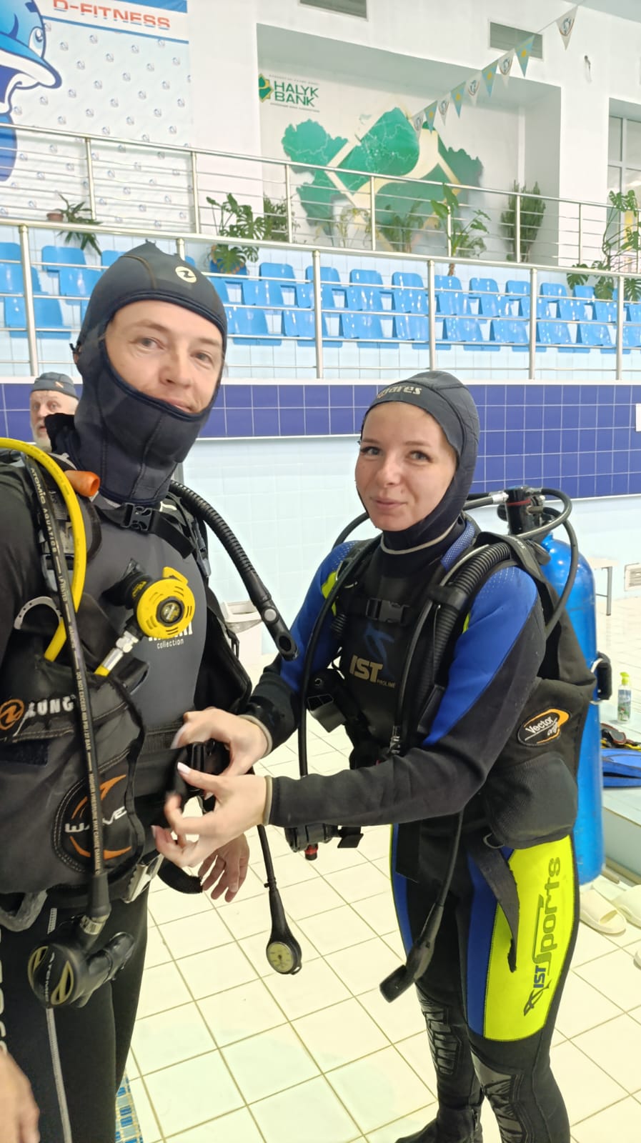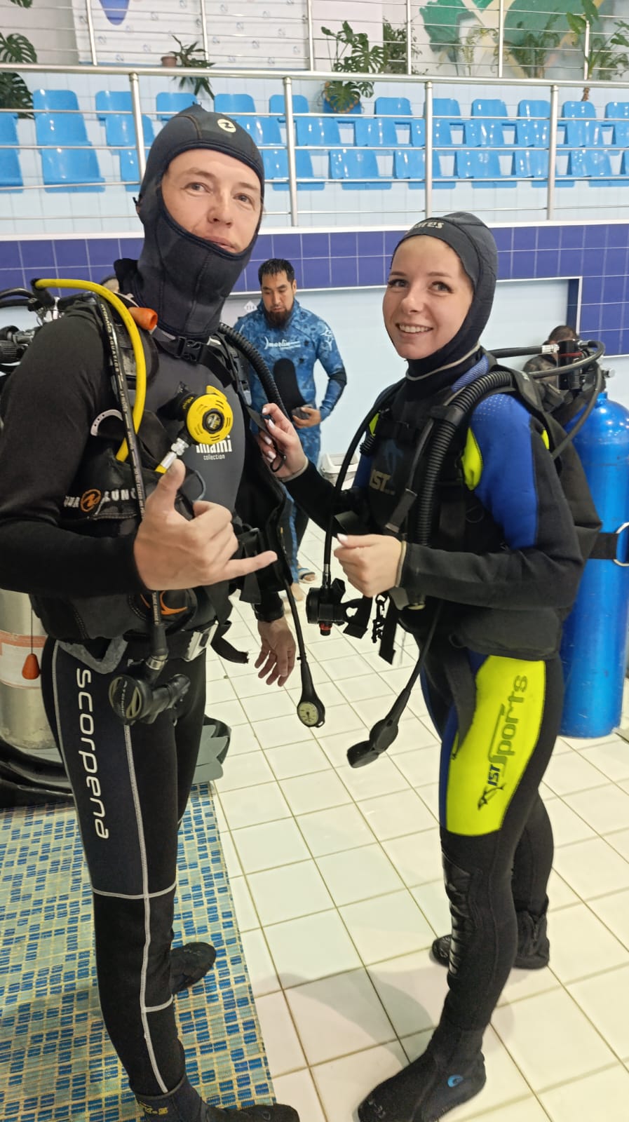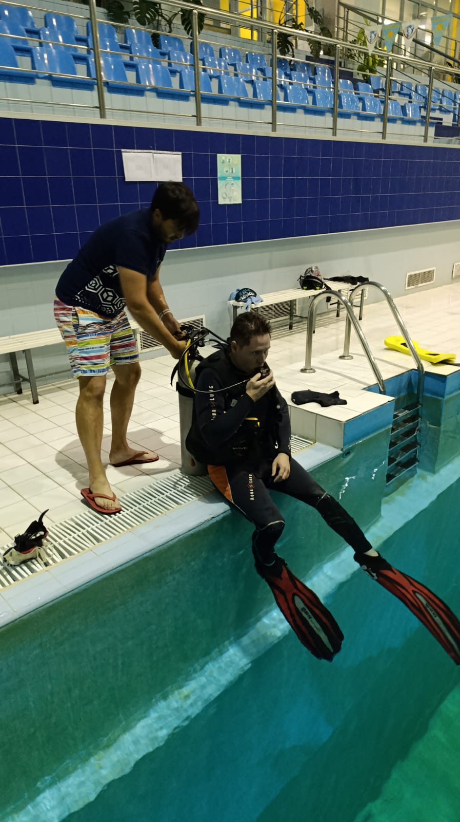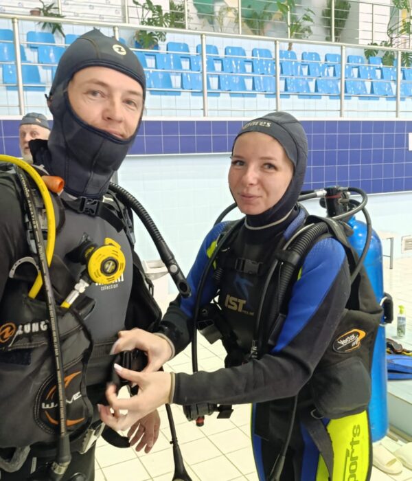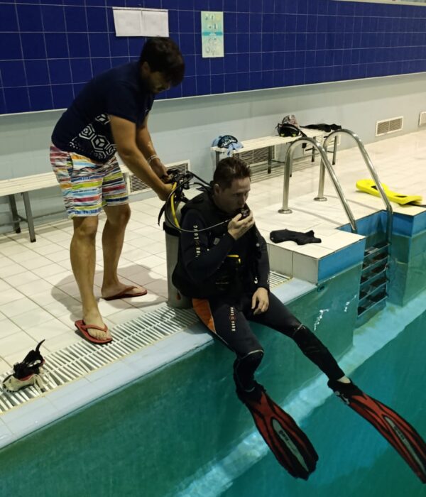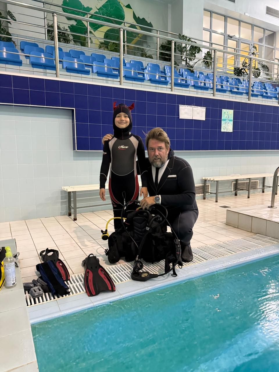 Погружение в бассейне под постоянным наблюдением инструктора.